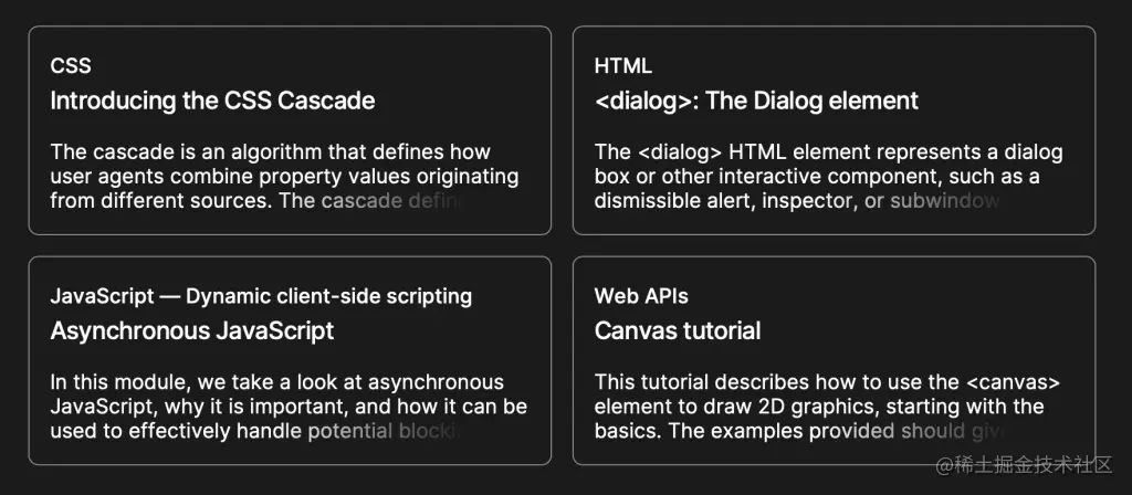 MDN在3月份推出了新的设计,这已经不是什么秘密了。它非常漂亮!其中有一些可爱的CSS-y宝石,让人看了很有趣。其中一个宝石是卡片组件如何处理截断的文本。
