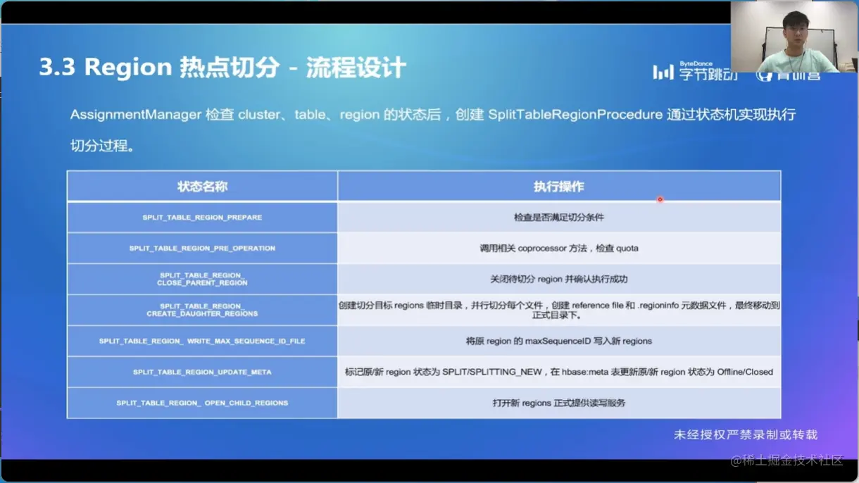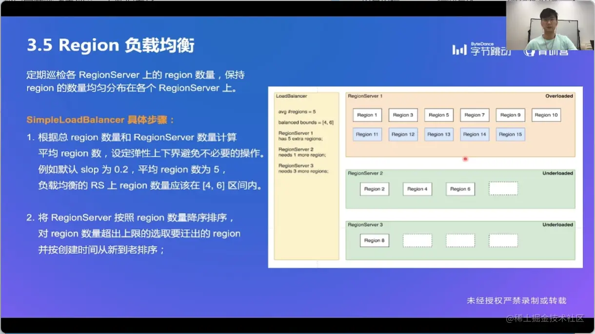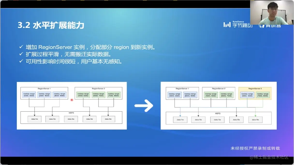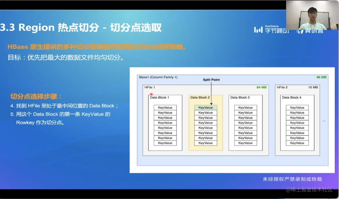 - 将整个Rowkey空间切分成很多段连续的分片,叫做region,交给RegionServer进行服务。