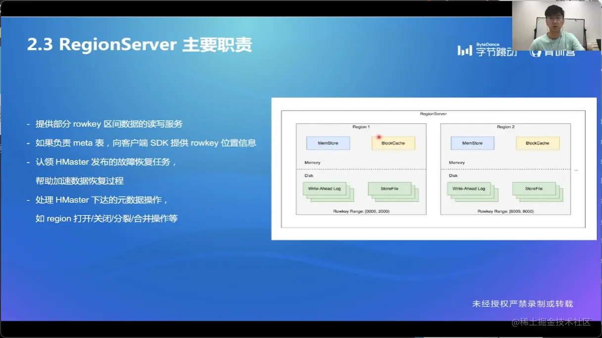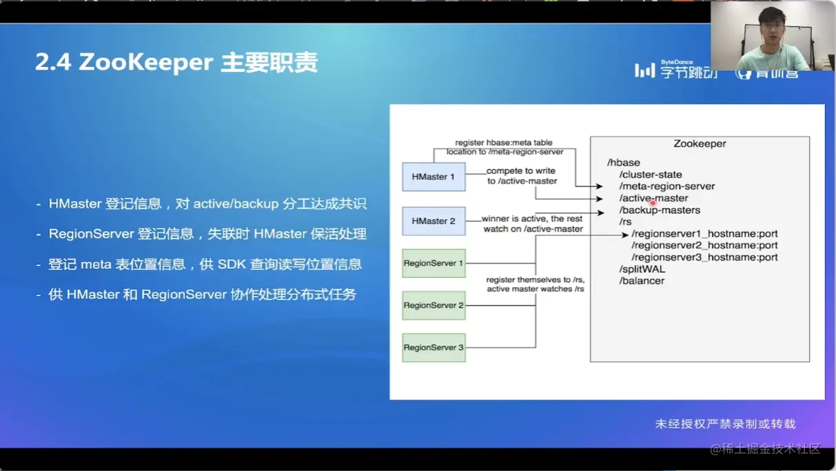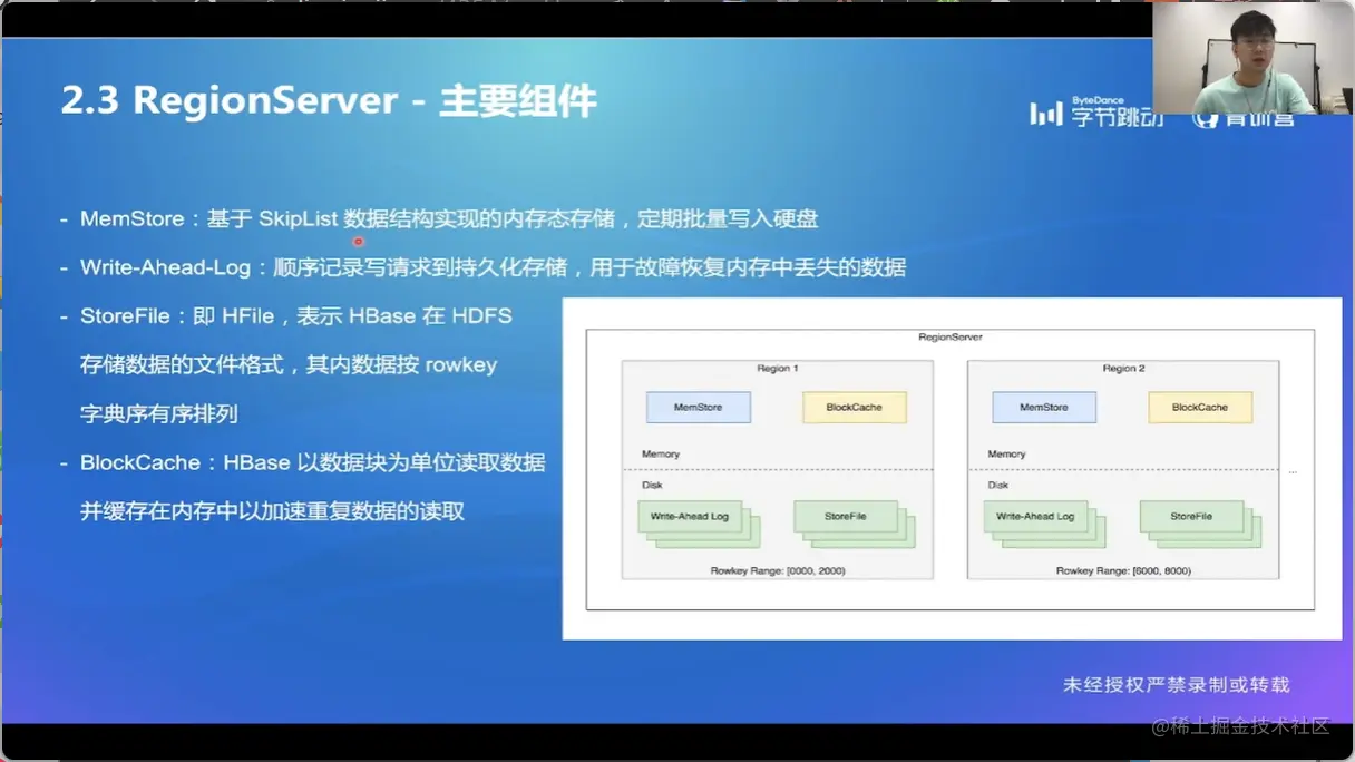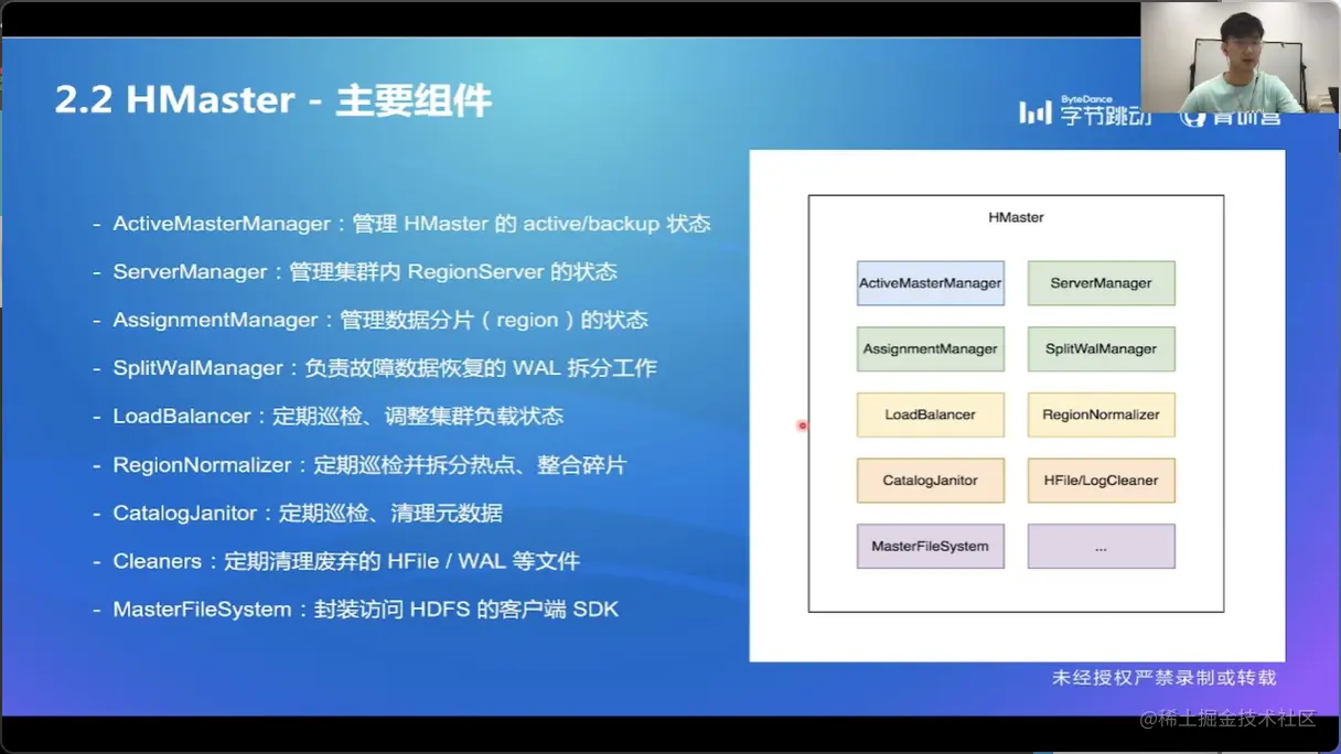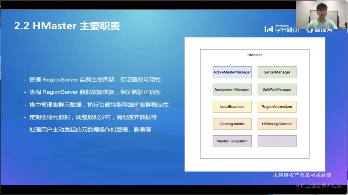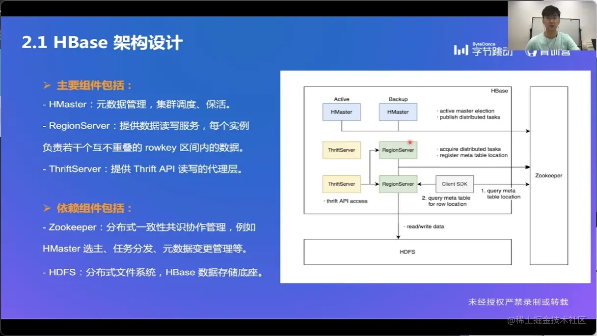 - HBase的整体架构,HMaster和RegionServer的功能以及组件