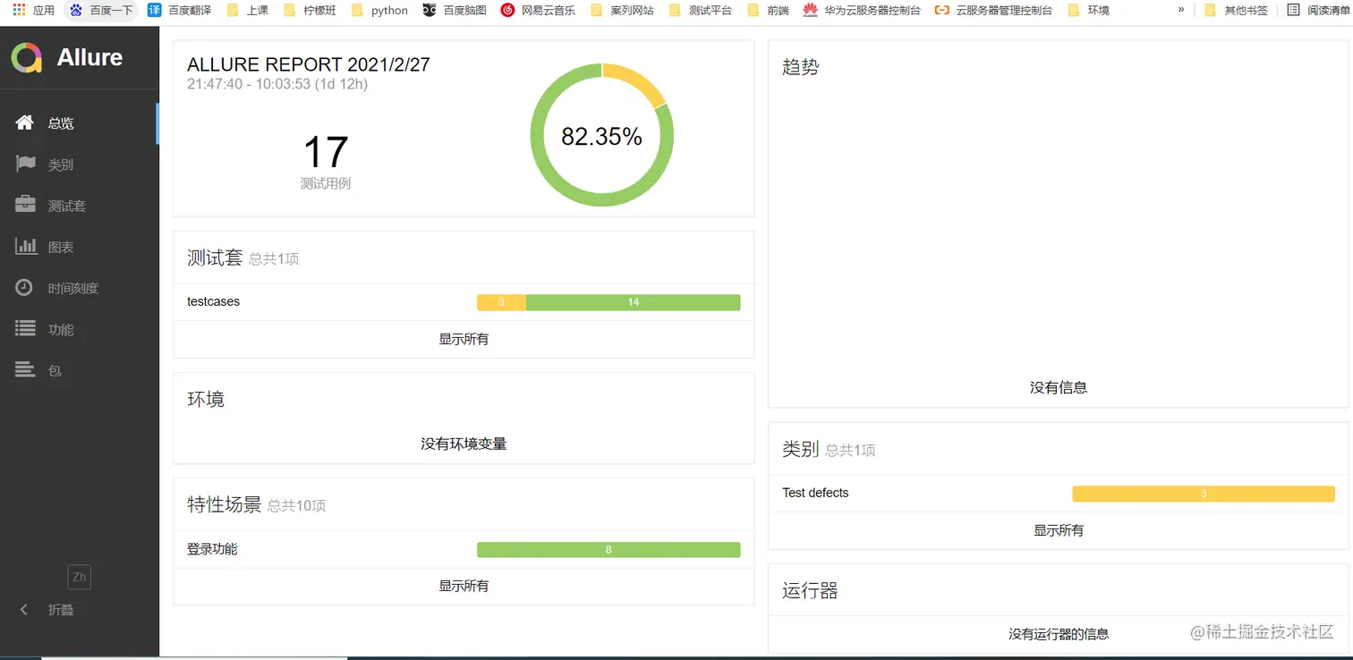 执行上述命令,allure服务启动之后会自动在打开浏览器,显示allure的服务页面