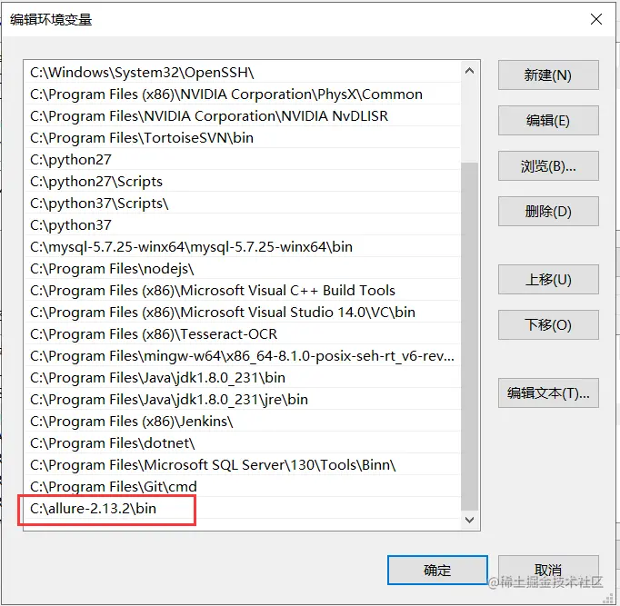 将allure解压之后的allure路径的bin目录路径放到环境变量当中
