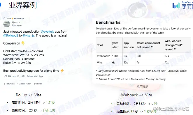 - 高性能:启动时间和更新时间均高于Rollup和Webpack
