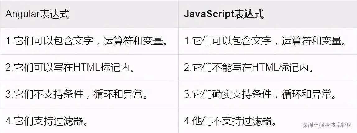 角表达式是类似于JavaScript的代码段,通常放在诸如{{expression}}之类的绑定中。这些表达式用于将应用程序数据绑定到HTML