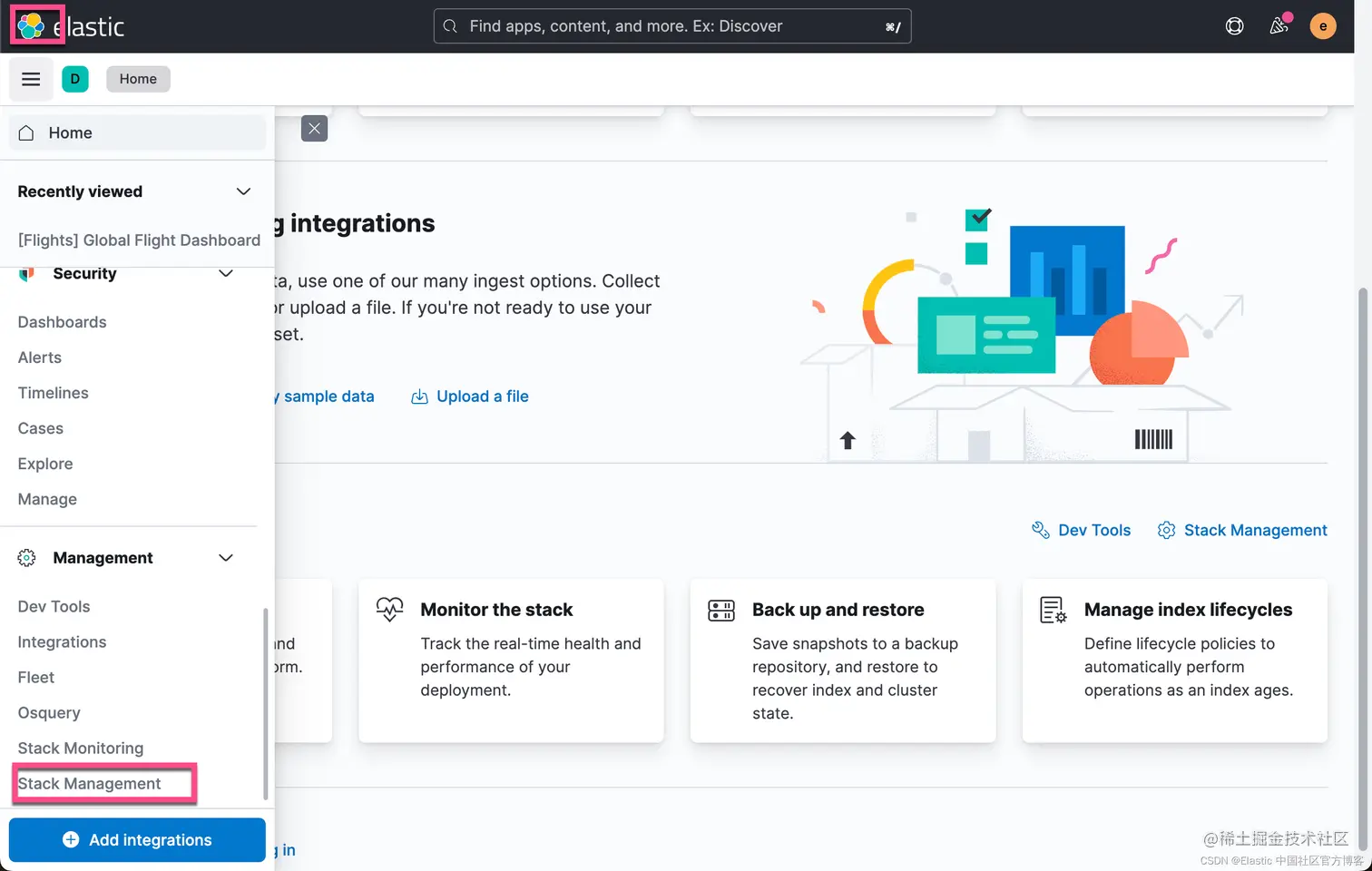 为了达到结构化的目的,我们可以采用 grok processor 来处理上面的常用日志格式。我们启动 Kibana: