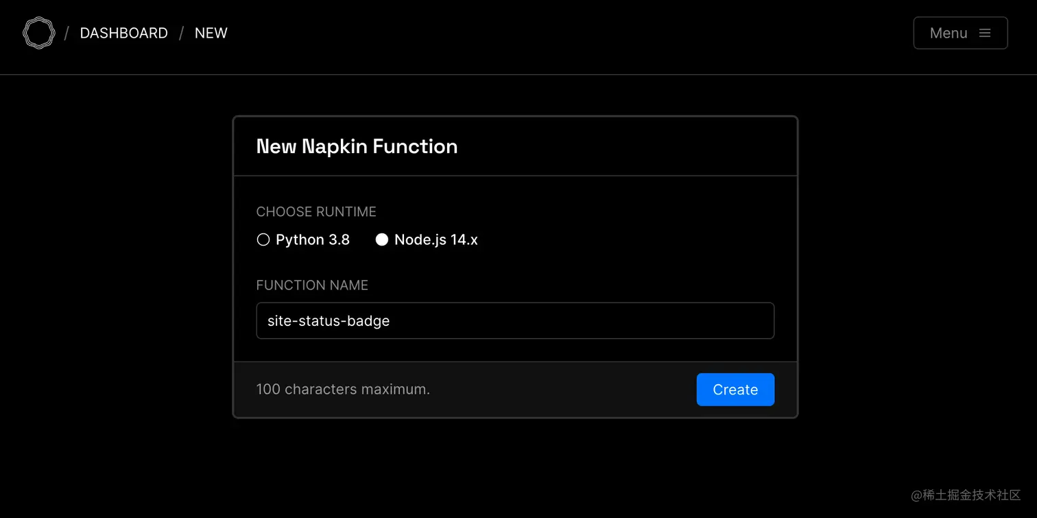 Badgen不支持自定义SVG,所以我们要让我们的徽章直接与Napkin端点对话。让我们为此创建一个新的Napkin函数,名为site-status-badge 。