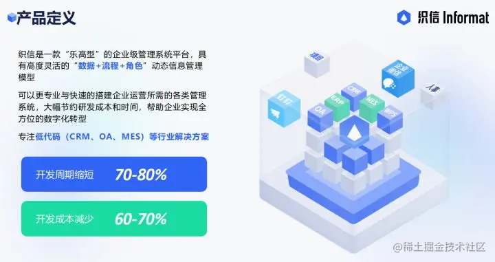 因为不同企业对于CRM系统功能需求的侧重点不一样,所以对于企业来说,最好是根据自己的需求进行筛选,选择能匹配企业功能需求的产品。如果企业是需求变动比较快,而且需要在较短时间完成并投入使用中,建议使用**“织信Informat”企业级低代码开发平台**,它在系统配置上具有高度灵活性、开发周期短、开发成本低等特点。