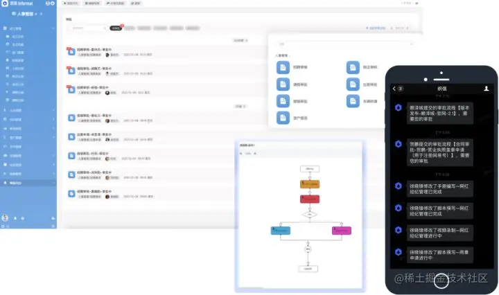 系统可以建立需要审批的流程,进行编辑修改,在审批工作台中查看所有等待审批与已审批的流程,手机端与网页端都可快速发起审批与接收审批信息。