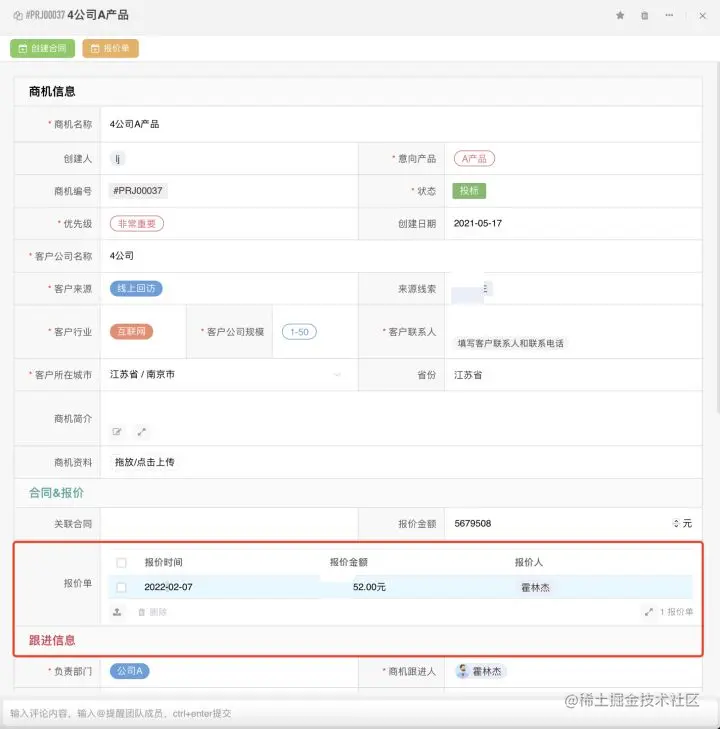 业务人员可以通过商机管理创建报价单,同时通过报价记录关联客户信息,实现实时查询。