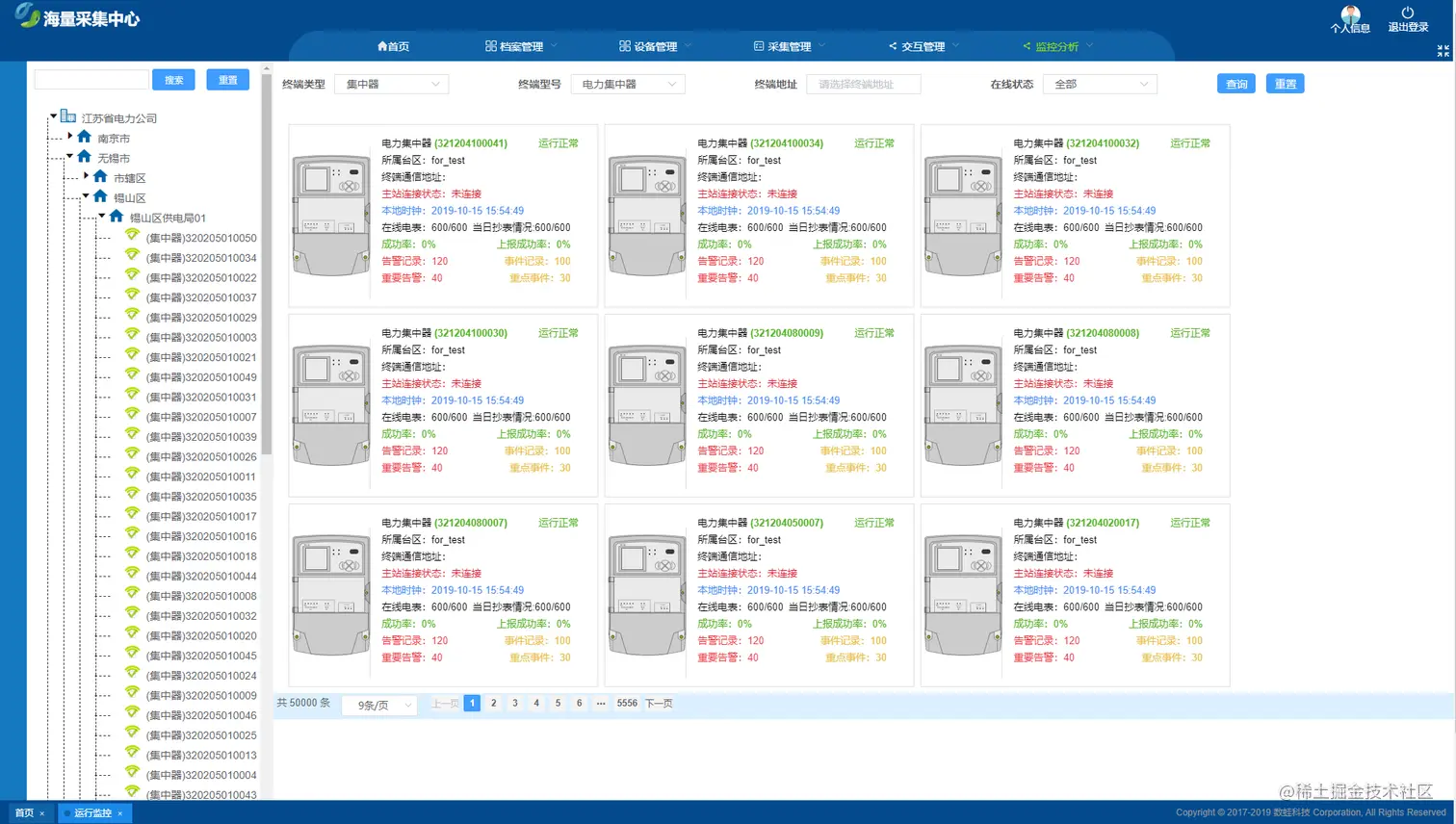 海量用电信息采集与管理平台V2.0,可满足5000台物理集中器、3000万台智能电表业务承载;通过集群化部署,可支持物理集中器对接、智能电表的无限扩展。