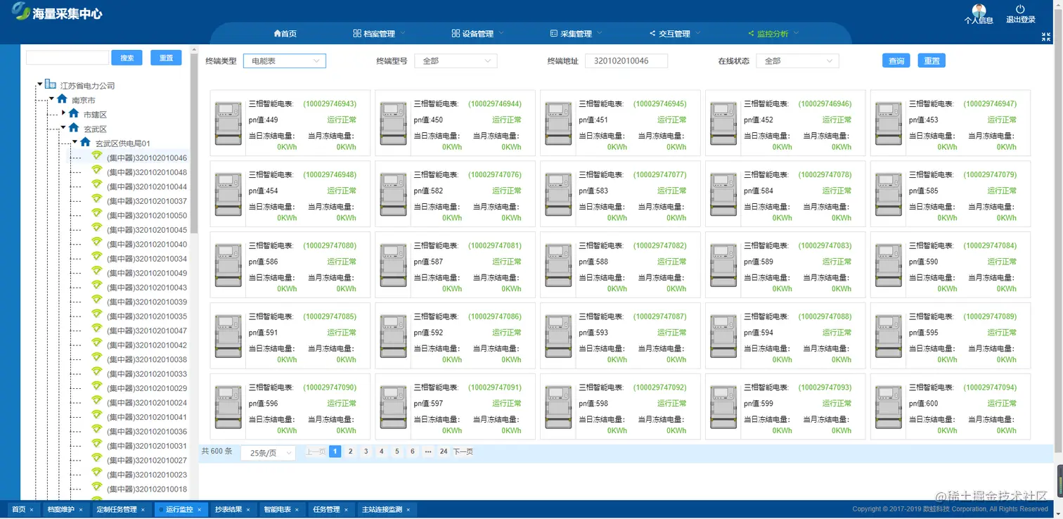dgiot海量用电信息采集与管理平台实现对关口、专变用户、公用配变、低压用户的采集全面覆盖对各类用电信息实现全面采集、监测;实现购电侧、供电侧、售电侧综合统一的信息管理,涵盖了传统意义上的厂站电能计量遥测、负荷管理、低压集抄等系统满足售电企业电能信息精益化管理要求,为企业提升快速响应市场变化、快速反映客户需求从客户用电信息的源头提供数据支持。平台不仅支持宽(窄)带载波、微功率、RS485、2/3/4G等传统采集网络,同时支持LoRa(WAN)、NB-IoT、ZETA等新型物联网网络采集;为国家电网公司泛在电力物联网建设中的高频采集、停电上报统计、电表分钟级召测、电压电流采集等营销业务策略的实施提供宝贵建设经验与技术支撑。同时,平台在支持单通道采集同时,新增了多通道采集与采集通道智能切换功能,不但可以提升采集成功率与稳定性,而且可以为传统用电信息采集优化运维模式、提高运维效率、进行物联网探索应用提供典型经验。