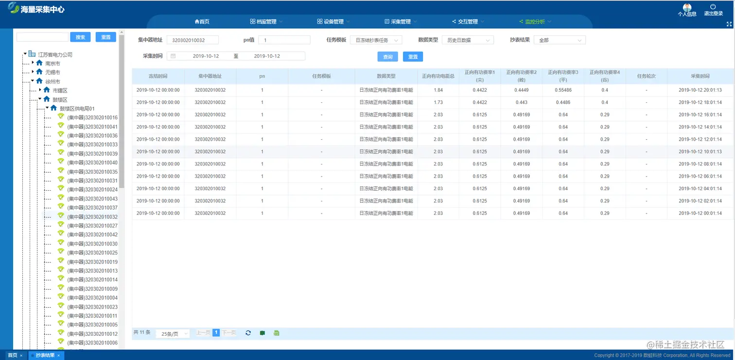 单库5亿抄表结果下查看单个任务的抄表结果: