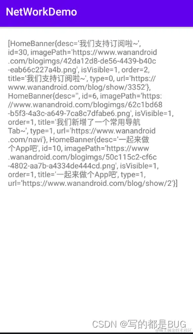 因为我们的接口是banner的接口,我们就不写轮播图了就写一个textview展示一下我们的网络请求的数据就好,