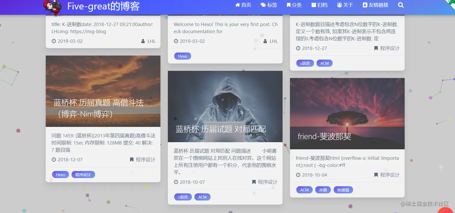 之前用于装饰个人的Hexo博客背景和点击事件,于是动手弄弄顺便学习学习,现在分享出来给有需要的人。