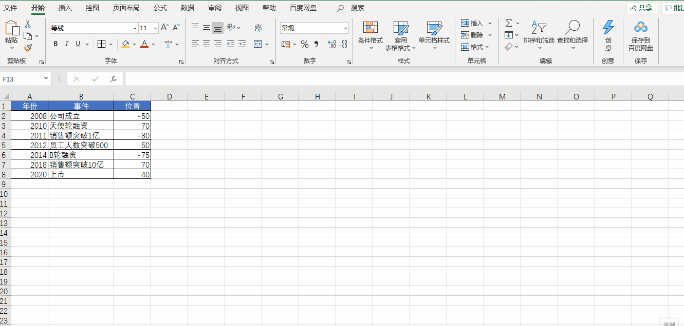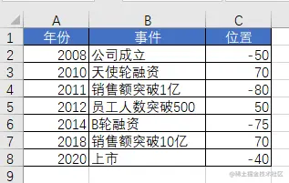 我们把公司的各种大事件添加到数据表当中