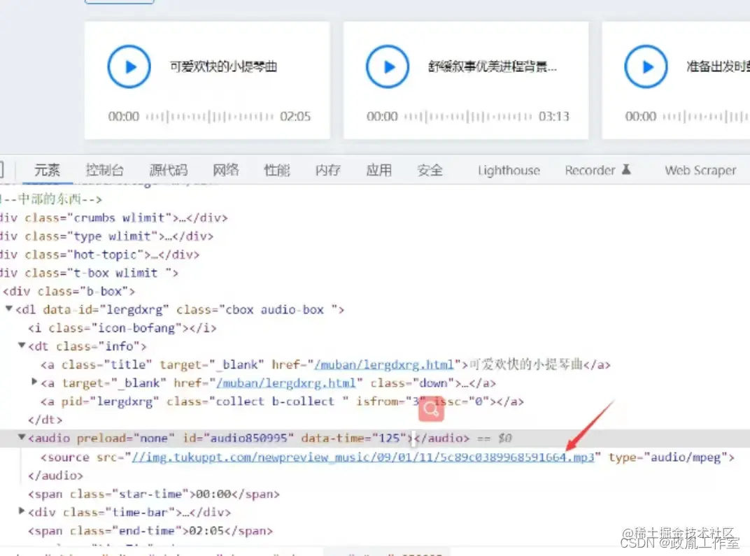 首先找到当前网页需要的音频页面数据,先获取到准确的数据页面信息