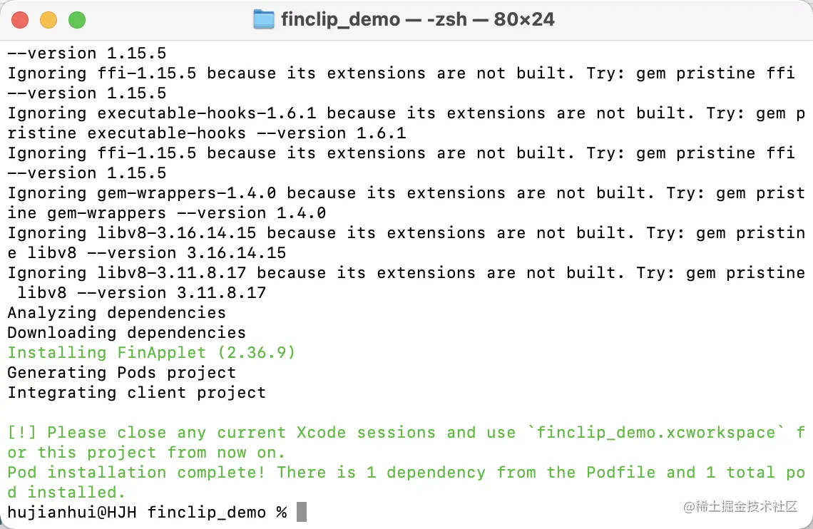 看到这个绿色的字样则代表依赖拉取成功了,那么finclip_demo就是完整的代码包了拉~