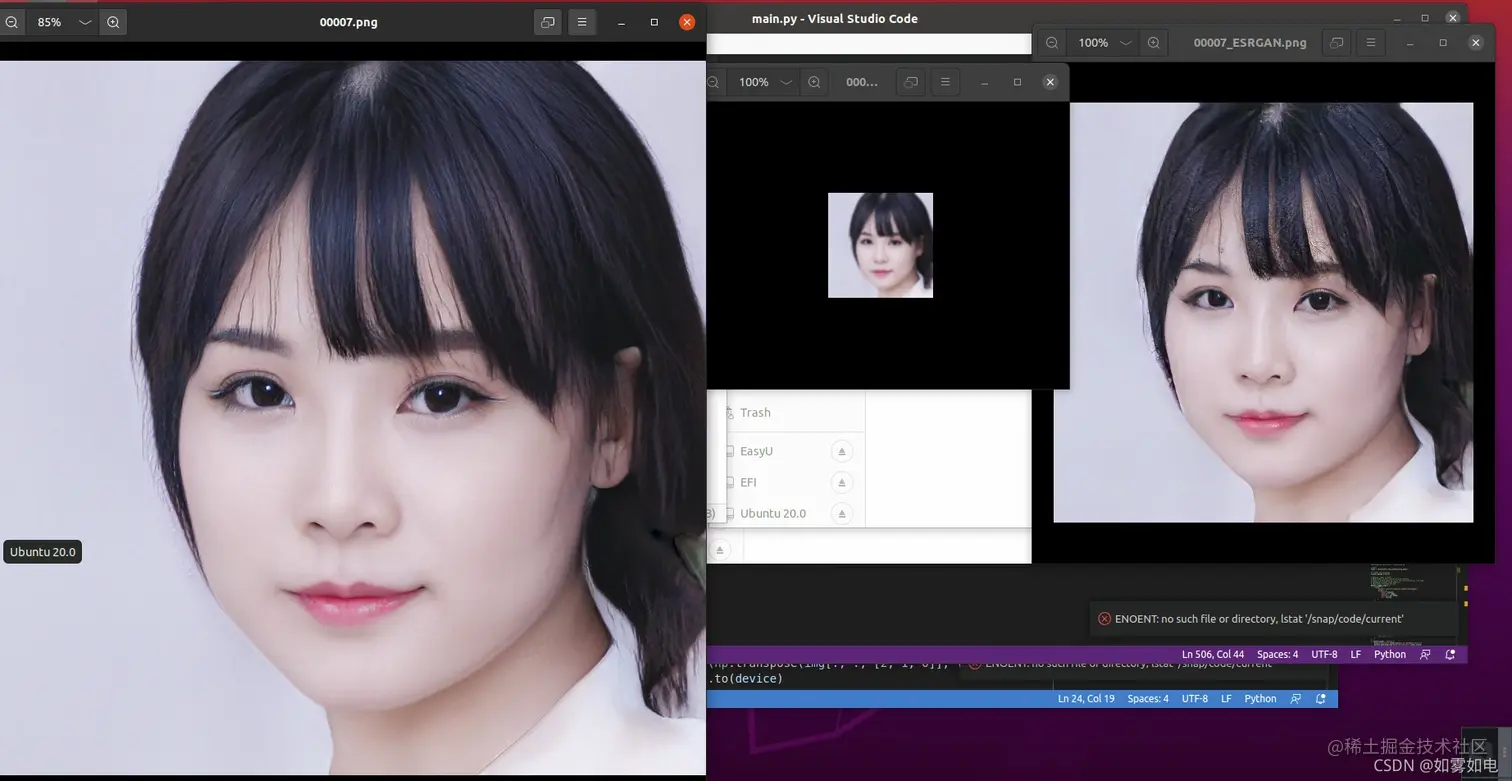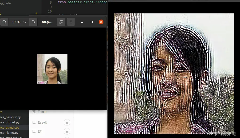 上面这个链接里提供了很多模型,这里简单测试一下ESRGAN的实际效果,本人使用500张1024*1024的人脸数据对模型进行了测试