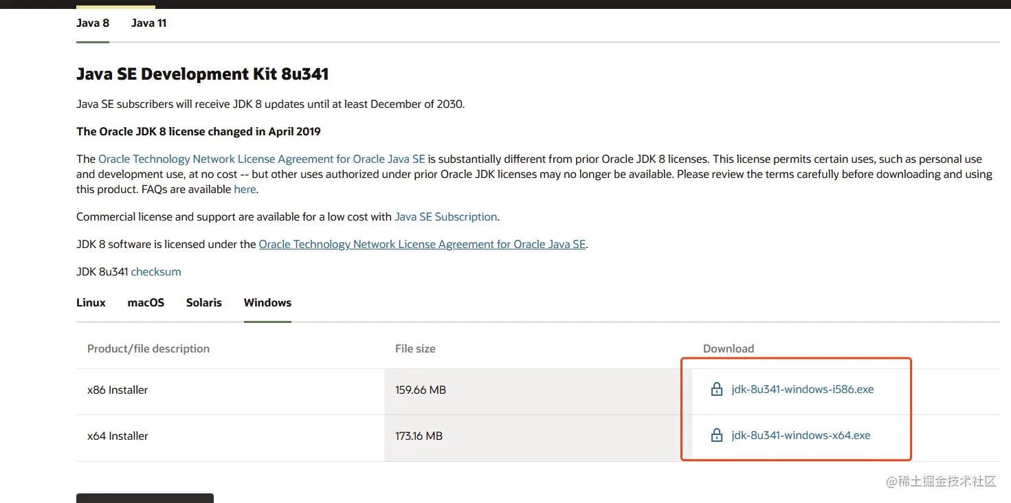 注:官网下载需要登录Oracle账户,这里提供了jdk网盘链接,可以在这里挑选合适的版本下载