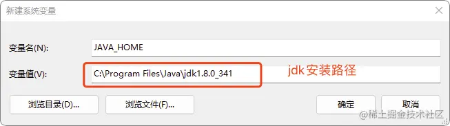 C:\Program Files\Java\jdk1.8.0_341 #变量值