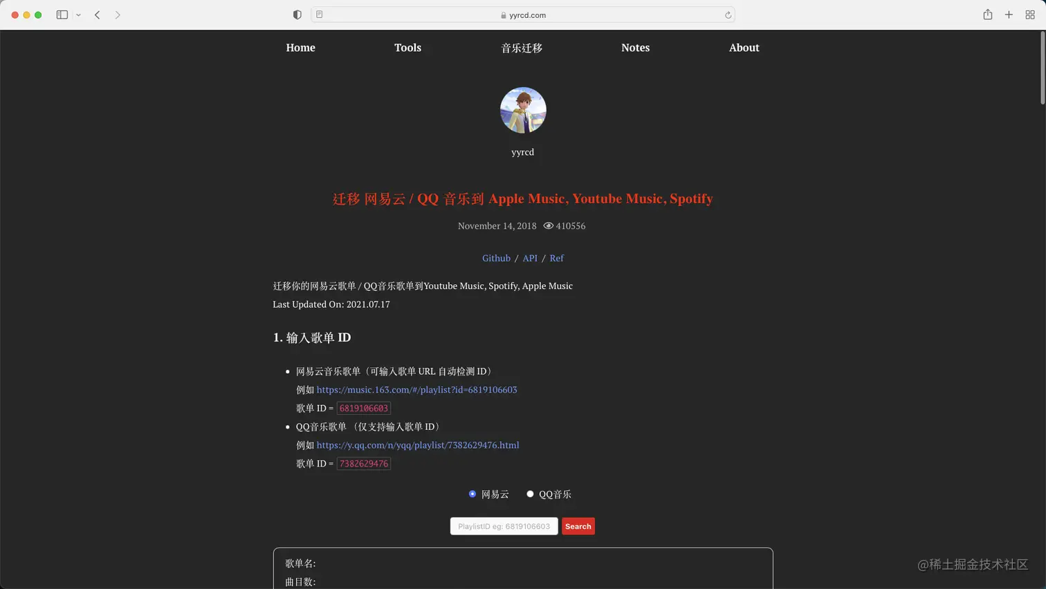 2.浏览器访问 yyrcd.com/n2s/,选择歌曲来源,输入playlist id