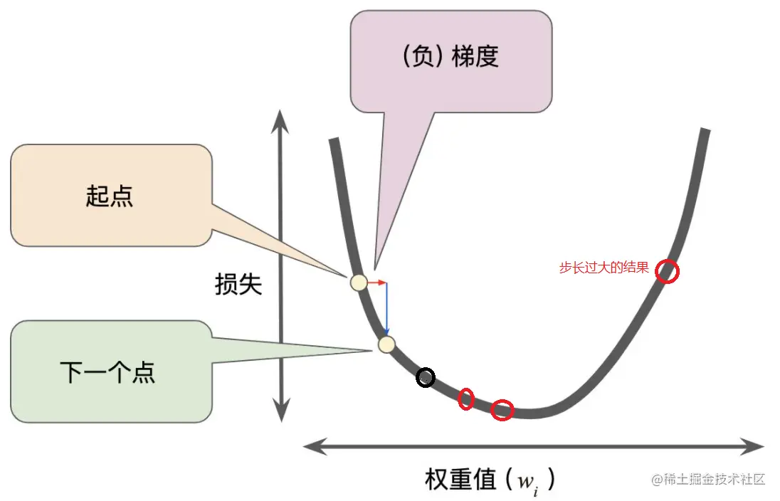 从上图的来看,我们需要的是损失函数最小,也就是需要这个点向右边的底部移动,这个过程就是梯度下降。