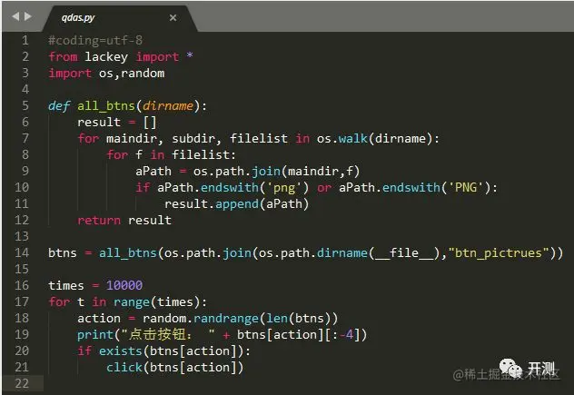 实现了一个类似monkey工具的脚本示例如下(将所有截图放在工程里的btn_pictrues目录下即可):