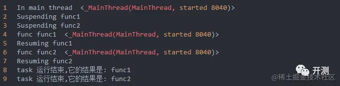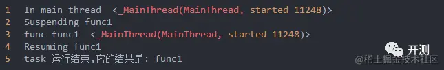 可以看到同步函数实现了并发,但是它们跑在了不同的线程中,这个就和之前传统的使用多线程是一样的了。