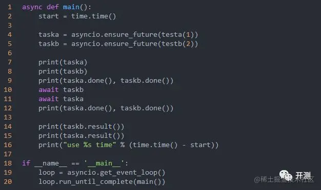 由于await 只能写在async def 函数中,所以这里还需要新创建一个函数。