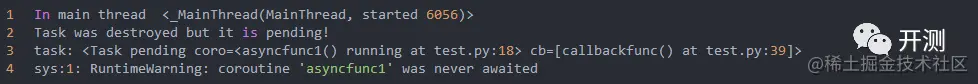 上面的函数,比如说我只想将asyncfunc1() 函数运行并且得结果,可以使用loop.create_task()方法创建一个task对象,task是Futures的子类,当调用loop.run_until_complete() 以后,协程跑完以后,通过task.result()获取协程函数的返回结果。