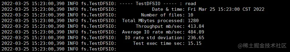 hadoop jar /opt/module/hadoop-3.3.1/share/hadoop/mapreduce/hadoop-mapreduce-client-jobclient-3.3.1-tests.jar TestDFSIO -read -nrFiles 10 -fileSize 128MB