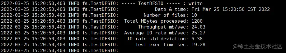hadoop jar /opt/module/hadoop-3.3.1/share/hadoop/mapreduce/hadoop-mapreduce-client-jobclient-3.3.1-tests.jar TestDFSIO -write -nrFiles 10 -fileSize 128MB