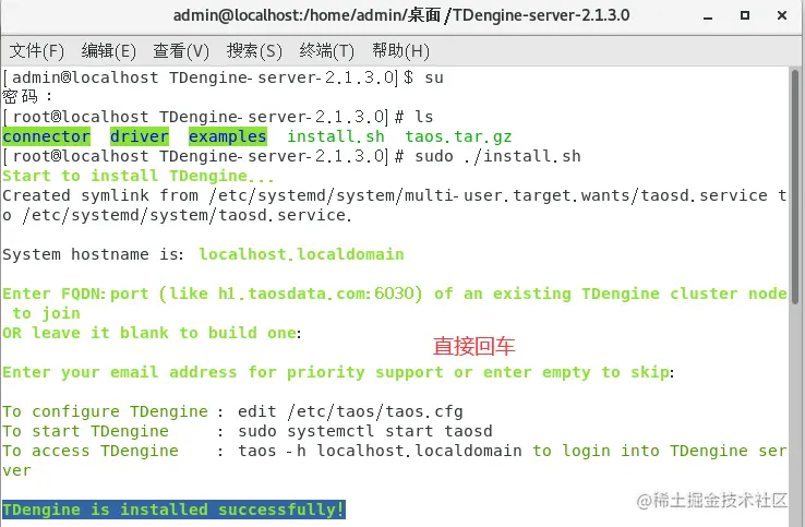至此,TDengine服务器在CentOS的安装已经完成了。