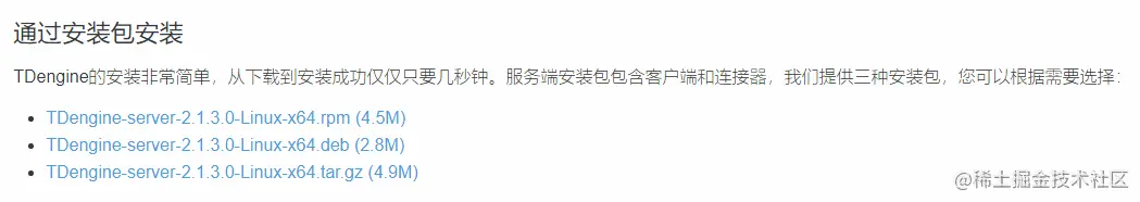 打开涛思数据官网,找到服务器安装包:(TDengine-server-2.1.3.0-Linux-x64.tar.gz (4.9M))