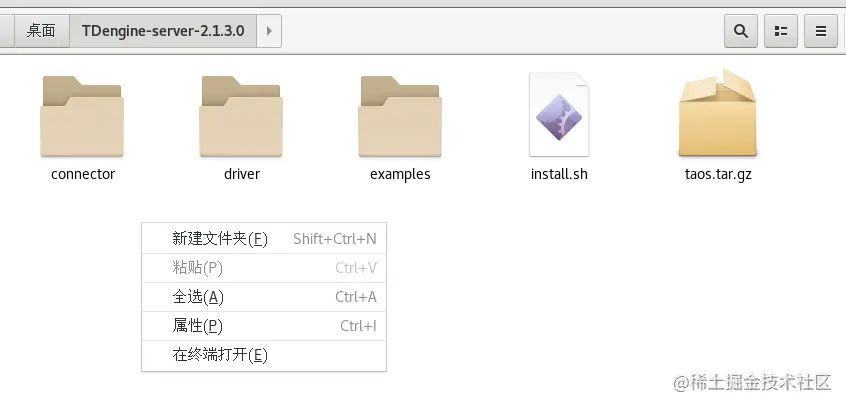 解压下载好的.tar.gz,然后进入文件夹,子文件夹目录结构如下,然后右键打开终端: