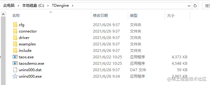 然后就可以在C盘看到“TDengine”文件夹了,目录如下: