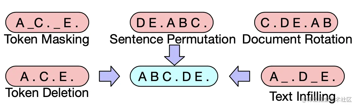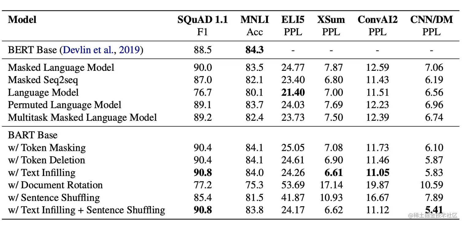 BART的模型结构和MASS相同也是Encoder+Decoder的配置,但是和MASS探索的方向不同,BART主要针对reconstruction任务中对输入信息扰动方式的探索,BERT使用的MASK本身也是一种扰动方式。