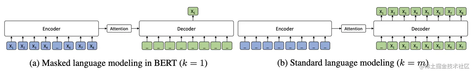 有意思的点在于,这里k的取值其实反映了MASS对Bert和GPT的融合权重,当K=1的时候,MASS其实等同于每次只MASK1个token的BERT模型,这时Decoder全部被MASK没有任何信息,而Encoder包含除MASK的一个token之外其余上下文信息。当K=seq_len的时候,MASS其实等同于GPT,这时Encoder没有任何信息,而Decoder部分就是传统的AR。在开头看到MASS的掩码还觉得有些摸不着头脑,看到这里感觉如果从loss function融合的角度来看,MASS的预训练目标其实可以类比Loss融合,和Huber Loss融合RMSE和MAE,以及Generalized Cross Entropy融合Cross Entropy和MAE,有着同一个世界同一个味道~~~