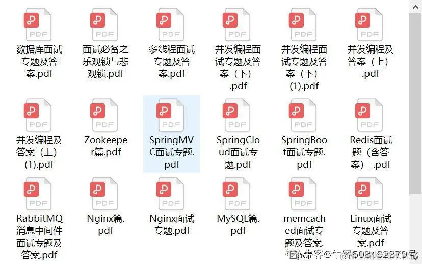 完整资料全收录包含了 Java 基础、容器、多线程、反射、对象拷贝、Java Web 、异常、网络、设计模式、Spring/Spring MVC、Spring Boot/Spring Cloud、Hibernate、MyBatis、RabbitMQ、Kafka、Zookeeper、MySQL、Redis、JVM 等十九个技术栈,所有问题答案都已梳理好,这里可以给大家看看