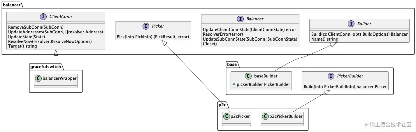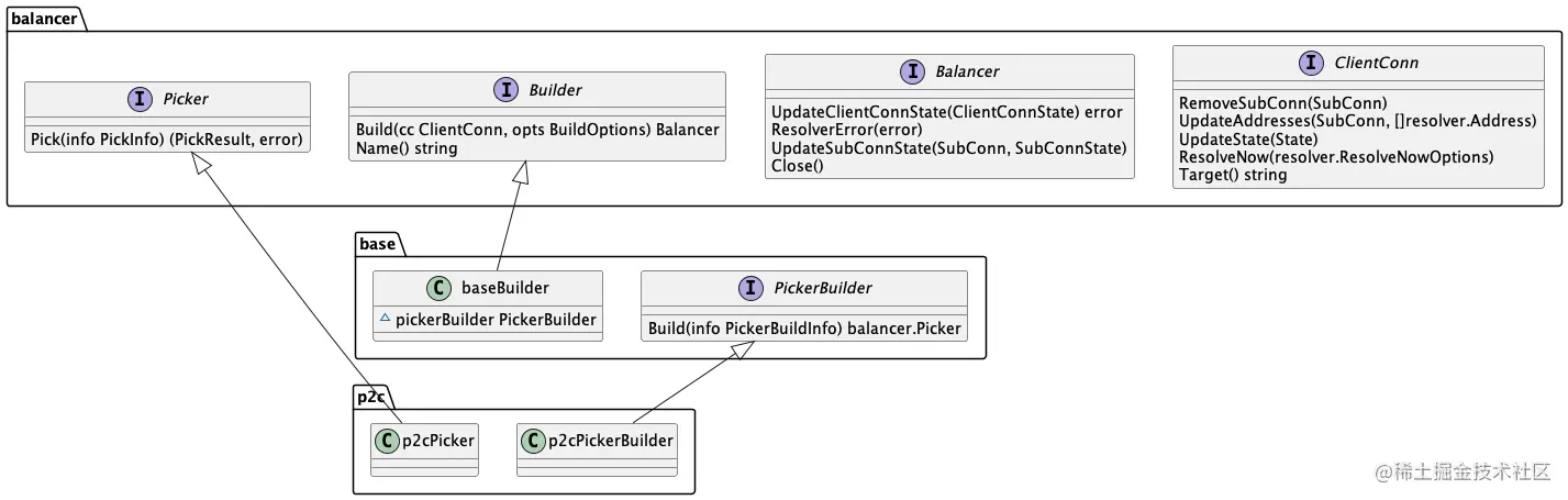 PickerBuilder接口Build方法返回值 balancer.Picker 也是一个接口,p2c.p2cPicker 实现了该接口。