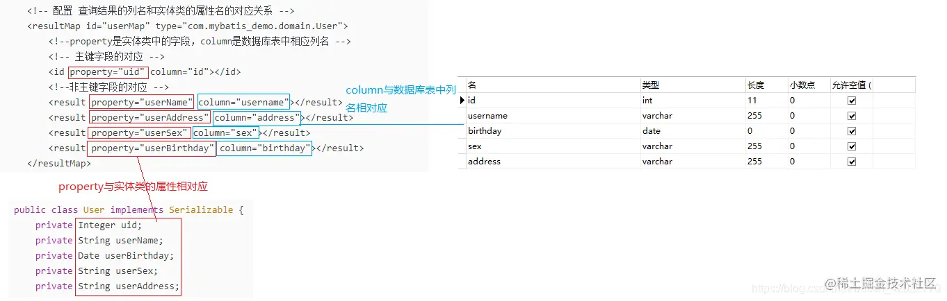 @Result(column = "address", property = "userAddress"), })