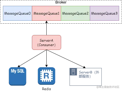 同时也要考虑本地数据库、缓存的压力,如果数据库响应变慢,处理消息的速度就会变慢,起不到缓解消息积压的作用。