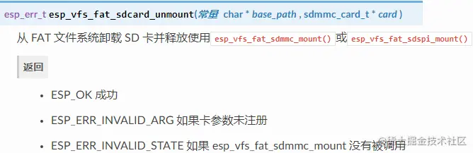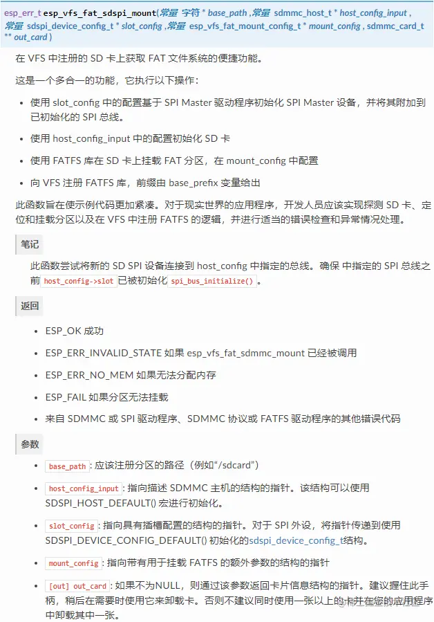 esp_vfs_fat_sdspi_mount()挂载文件系统- 使用FATFS库安装FAT文件系统(如果无法安装文件系统,则使用格式化卡);