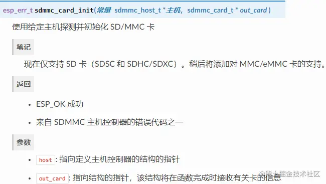 以下 SDMMC 接口位于 sdmmc/include/sdmmc_cmd.h。