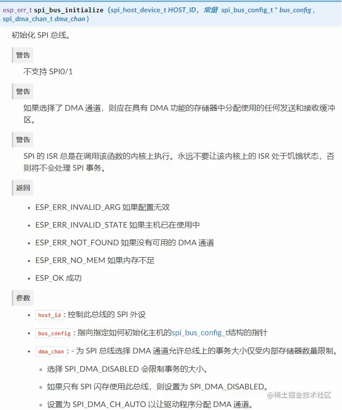 以下 SPI 主机接口位于 driver/include/driver/spi_common.h。