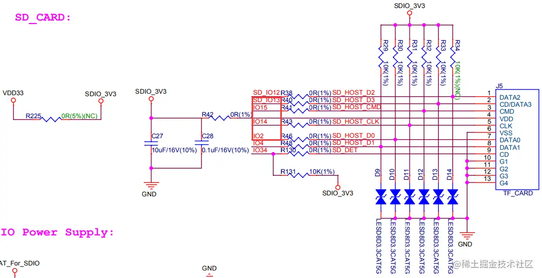 SD卡只能使用3.3V的I/O电平。SPI模式下信号线要加10-100K的上拉电阻。
