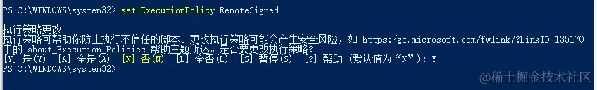 解决办法:以管理员身份运行powerShell,然后输入:set-ExecutionPolicy RemoteSigned ,回车,输入Y。