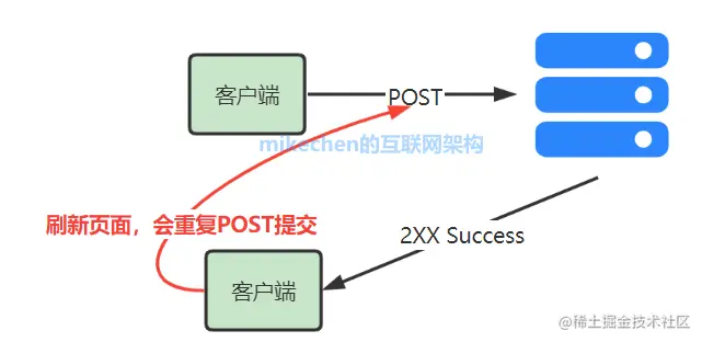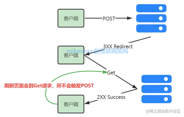 默认情况,提交 Post 请求到服务器后,如果直接刷新浏览器,会重新在提交一次 Post 请求。