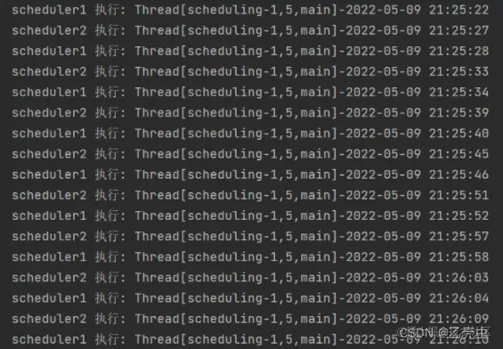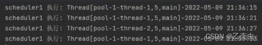 System.out.println("scheduler1 执行: " + Thread.currentThread() + "-" + DateTime.now());