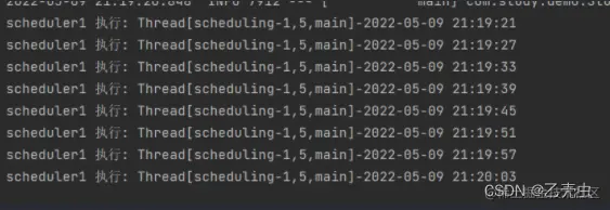 可以看到,是每隔6s执行一次,也就是下一个定时任务会被上一个没执行完的任务阻塞。