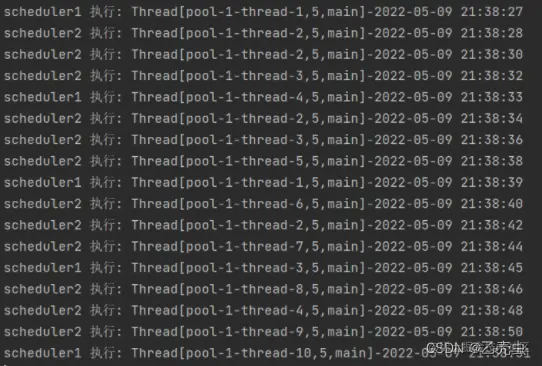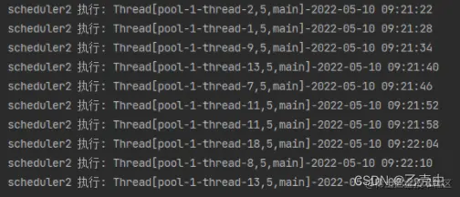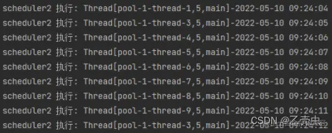 System.out.println("scheduler2 执行: " + Thread.currentThread() + "-" + DateTime.now());
